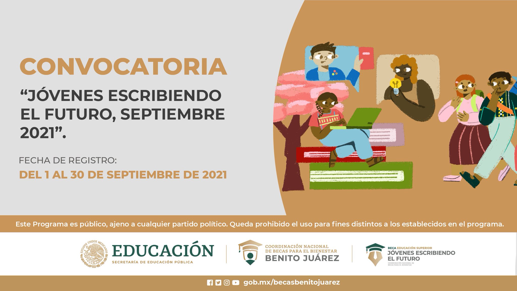 Convocatoria Jóvenes Escribiendo el Futuro Septiembre 2021. Becas Benito Juárez kínder 2021-2022. Convocatoria para la Beca Jóvenes Escribiendo el Futuro 2021.